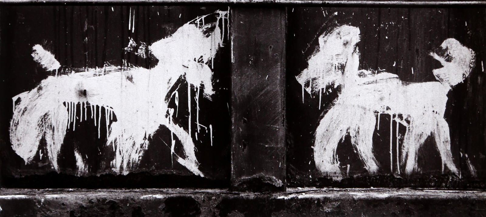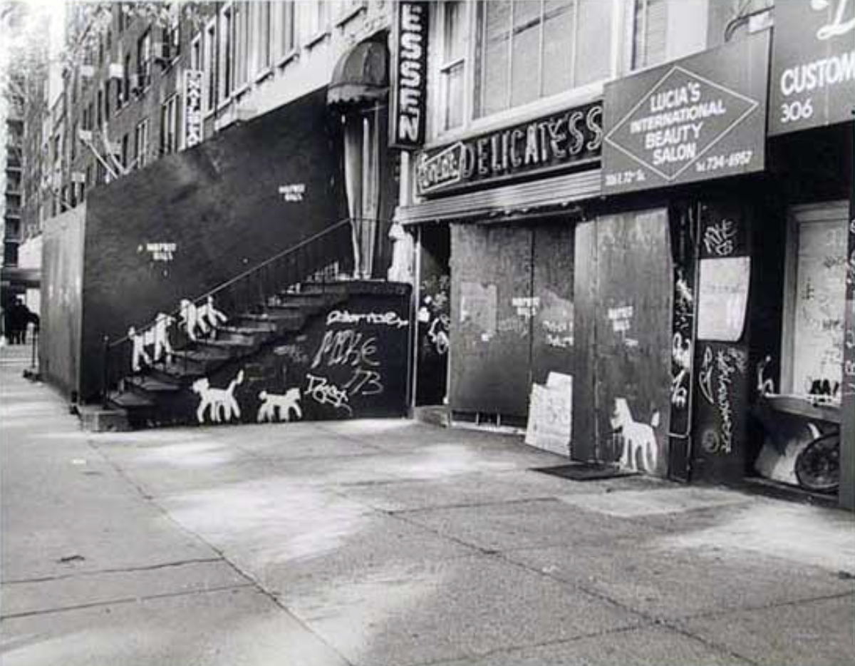 Peter Mayer (American, b. 1953) is an artist and graffiti writer from New York City's Upper East Side. During the later part of the 20th Century, he achieved international fame for his calligraphic dogs painted throughout Manhattan, particularly in the SoHo neighborhood. His first graffiti dog was produced on 73rd St. off of York Ave. in 1987. Mayer made his way from the UES to join the downtown scene at the invitation of Jean-Michael Basquiat. He recounts, when visiting "a usual spot" frequented by both artists, the text from SAMO written across the wall he was about to paint: "BRING YOUR DOGGIES DOWNTOWN". Between 1990 and 1991, Mayer met Charles Lucien who was in the process of founding his first gallery at 555 Broadway in Manhattan. Lucien later went on to organize exhibitions with other graffiti artists, including Basquiat and Keith Haring. He suggested that Mayer produce graffiti dogs on canvas. The first two canvas were donated to an auction to benefit AIDS victims in New York City, with a hammer price at around $400 each. Mayer’s graffiti works have been featured in numerous publications and television shows, including on MTV, NBC with Lloyd Kramer, Page 6 of the New York Post, FujiSankei television, CBS among others. Ten years after his first graffito on the rooftops of five buildings on York Ave. between 75th and 76th Sts, he began producing works on canvas. Works from the series are represented in major private collections in New York City and Europe. Mayer hosts "Graffiti Dog Super Art Now," on WIOX Roxbury at 91.3FM and 107.5FM in the Catskills. This website is produced in collaboration with Mayer as a repository for his archive of works, ephemera and press material.